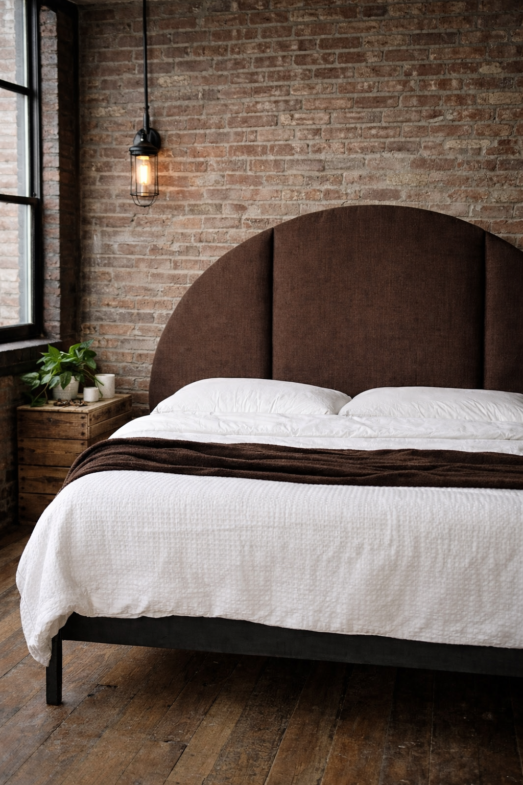 Bold yet refined, the Brooklyn Bedhead brings a modern loft sensibility into the bedroom. Its sculptural curved profile and generous padding create a striking focal point, while the softly tailored vertical panels add depth and architectural balance.